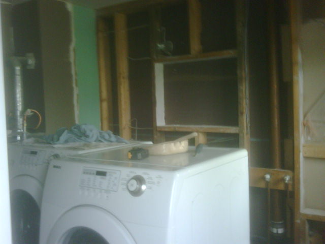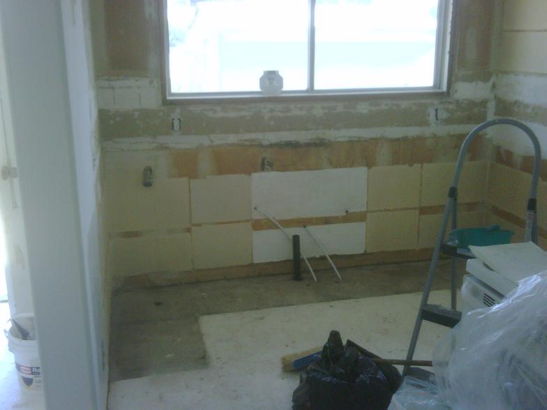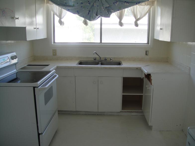 The back shelves, electrical plates, light fixtures, drywall, window coverings, trims, appliances, baseboards, flooring were removed to make way for the new.